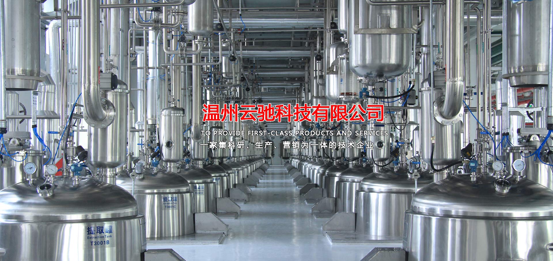 溫州云馳科技有限公司是一家集科研、生產(chǎn)、營(yíng)銷(xiāo)為一體的技術(shù)企業(yè),本公司生產(chǎn)的中藥提取、濃縮、蒸發(fā)及有機(jī)溶媒回收設(shè)備,衛(wèi)生級(jí)不銹鋼容器設(shè)備,衛(wèi)生級(jí)管道配件等系列產(chǎn)品,范圍涵蓋制藥工程、乳品工程、生物工程、化工工程等領(lǐng)域,目前,本公司產(chǎn)品包含八大系列和28類(lèi)品種,分別為中藥提取設(shè)備、濃縮設(shè)備、純化分離設(shè)備,酒精回收設(shè)備,配液系統(tǒng)設(shè)備,食品乳品機(jī)械設(shè)備,不銹鋼容器設(shè)備以及輔助配套設(shè)備等,力爭(zhēng)為廣大客戶(hù)提供滿(mǎn)意的交鑰匙工程服務(wù),目前,本公司已與多家科研院所及相關(guān)設(shè)計(jì)單位、行業(yè)協(xié)會(huì)、技術(shù)專(zhuān)員合作,建立了完善的科研開(kāi)發(fā)體系,技術(shù)力量雄厚,擁有先進(jìn)的質(zhì)量保證體系,我們將打造一支素質(zhì)高,技術(shù)精,服務(wù)熱情的職業(yè)化隊(duì)伍,為廣大客戶(hù)解決設(shè)備工藝上的需求和難題并為廣大客戶(hù)提供優(yōu)質(zhì)的服務(wù)。